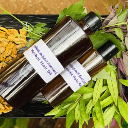 Herbal hair oil is a natural remedy designed to nourish and strengthen hair, promoting hair growth and scalp health.